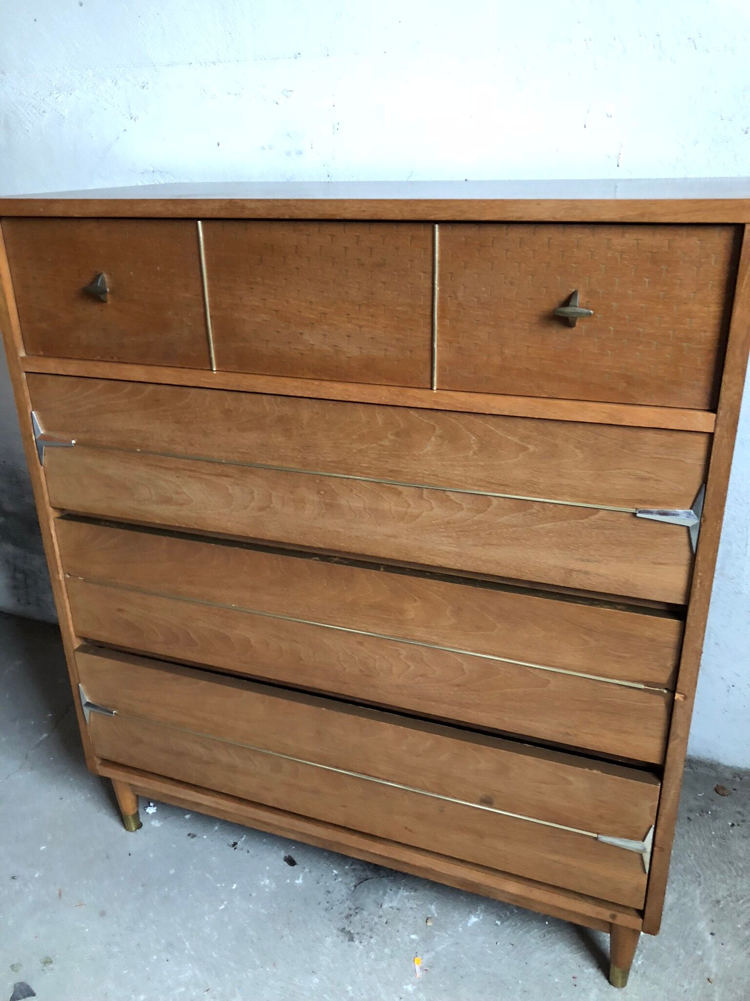 Kroehler signature line walnut rosewood and metal 8 drawer mid. This piece has been restored to excellent condition. Vintage kroehler 4 drawer dresser with oval mirror 12 photo. Antique large tiger oak princess dresser with tall framed tilt mirror, claw feet 11 photo. Asking $400 or best offer! Kroehler furniture stopped manufacturing in the 1980s. Look closely at the super stylish drawer pulls. They are a silver colored metal with turquoise enamel. Mid century dresser by kroehler furniture with images. Vintage kroehler 9 drawer dresser with images furniture. Mid century modern kroehler secretary desk dresser. Kroehler mid century modern dresser. You might have luck looking through scans of early newspaper ads.